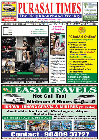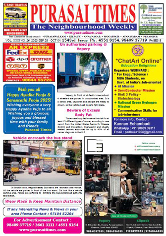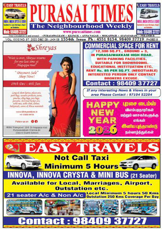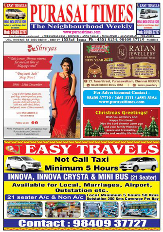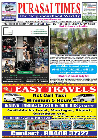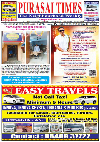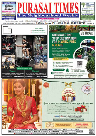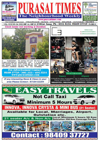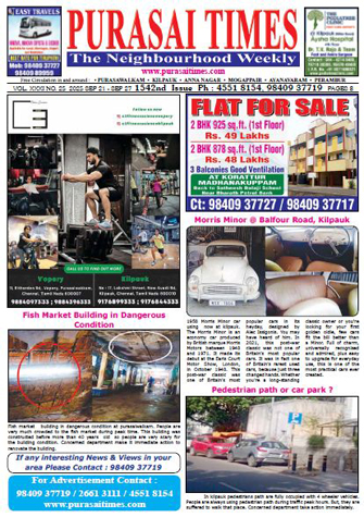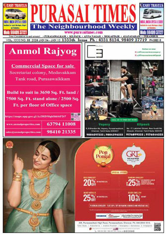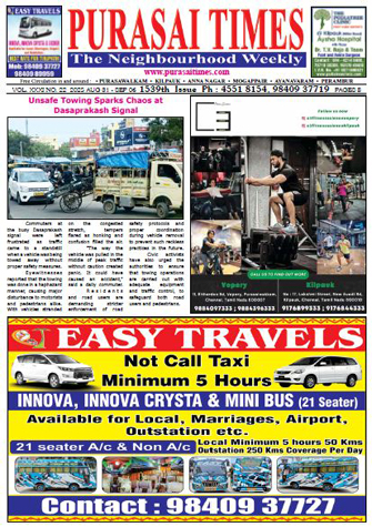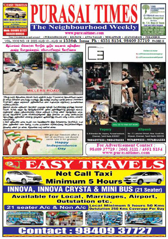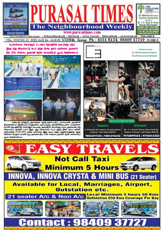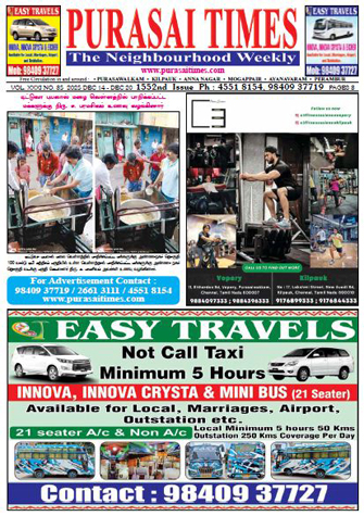 Free Circulation in and Around : • Purasawalkam • Kilpauk • Anna Nagar • Mogappair • Ayanavaram • Perambur